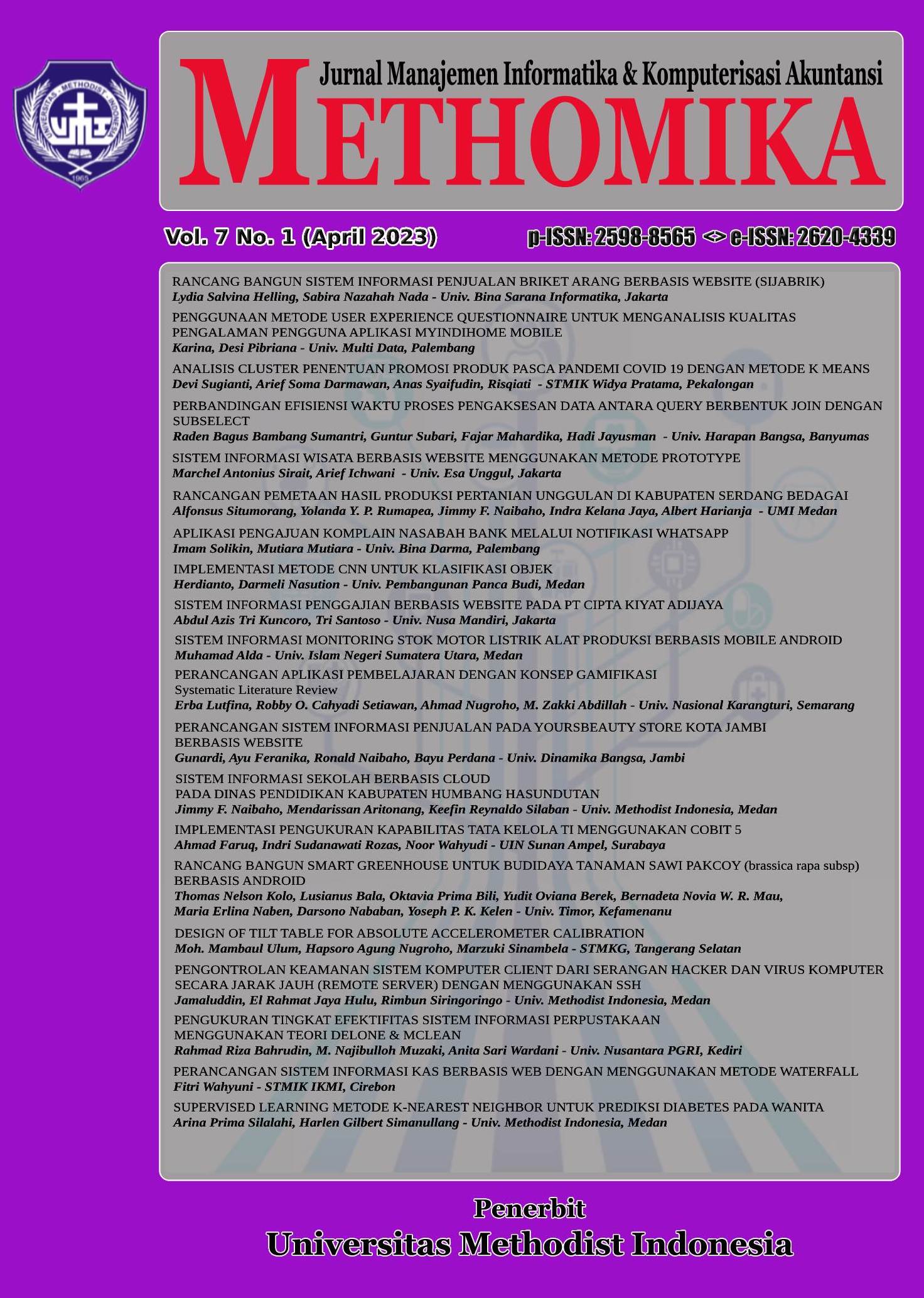 METHOMIKA: Jurnal Manajemen Informatika & Komputersisasi Akuntansi Vol. 4 No. 1 Tahun 2020