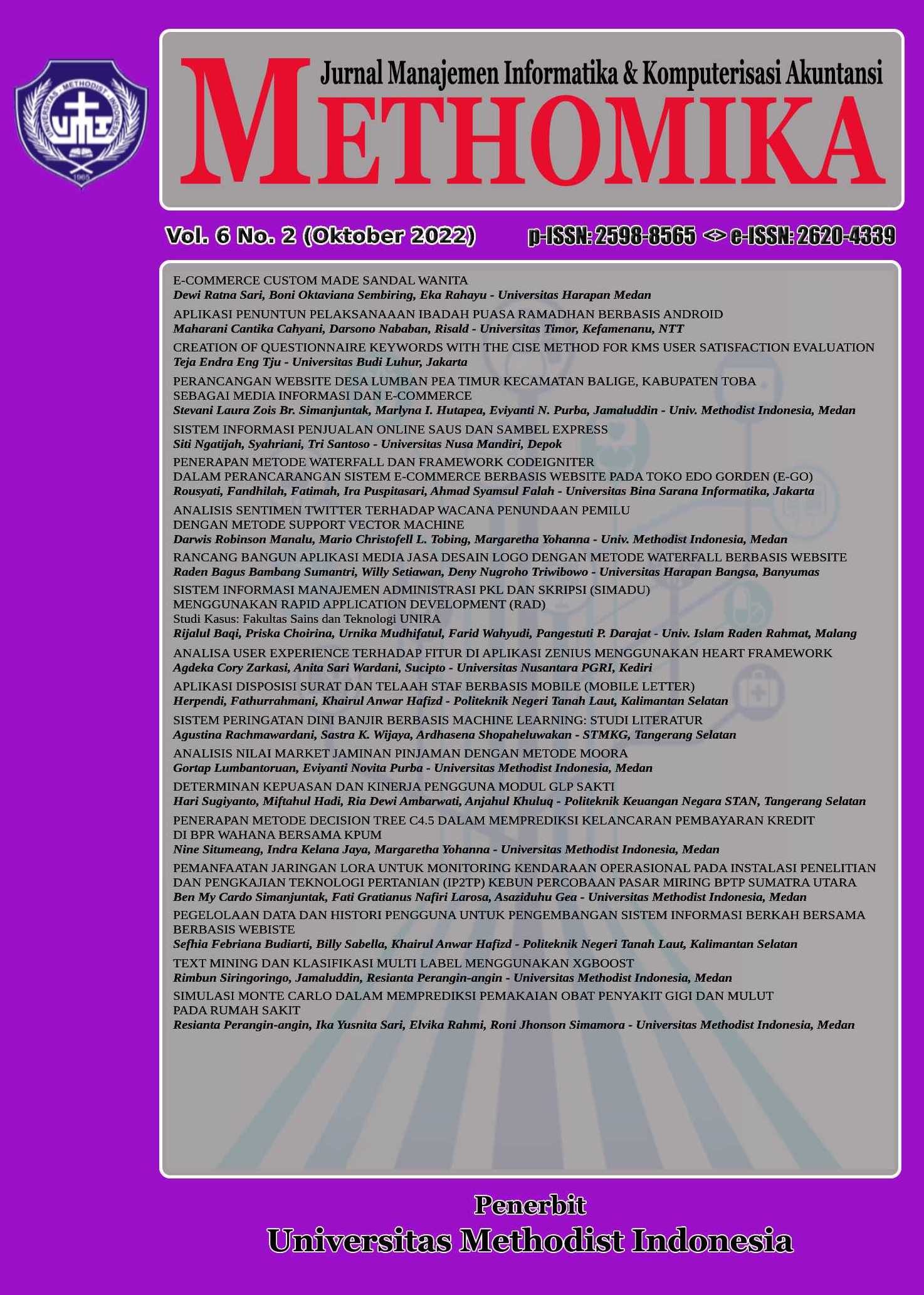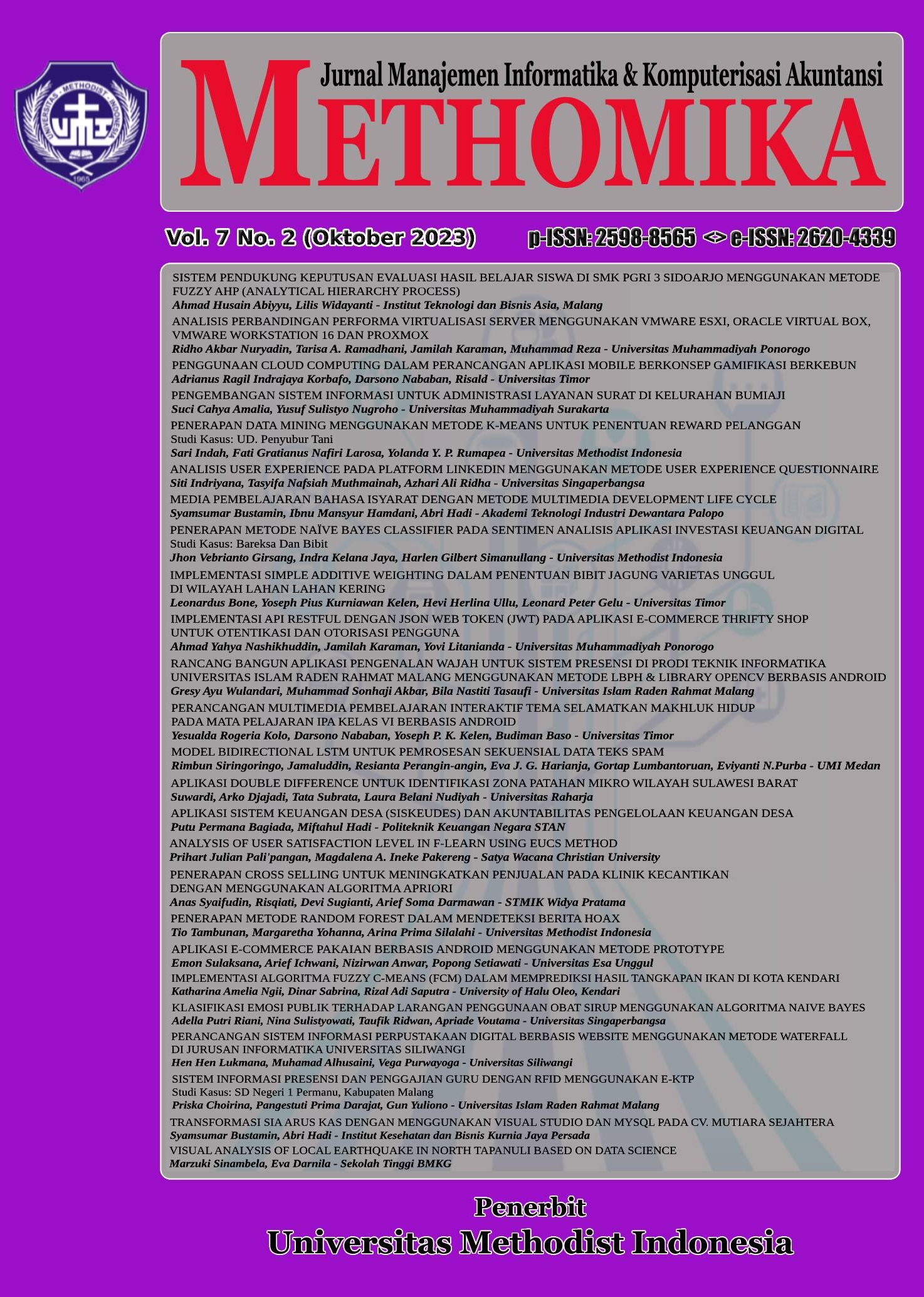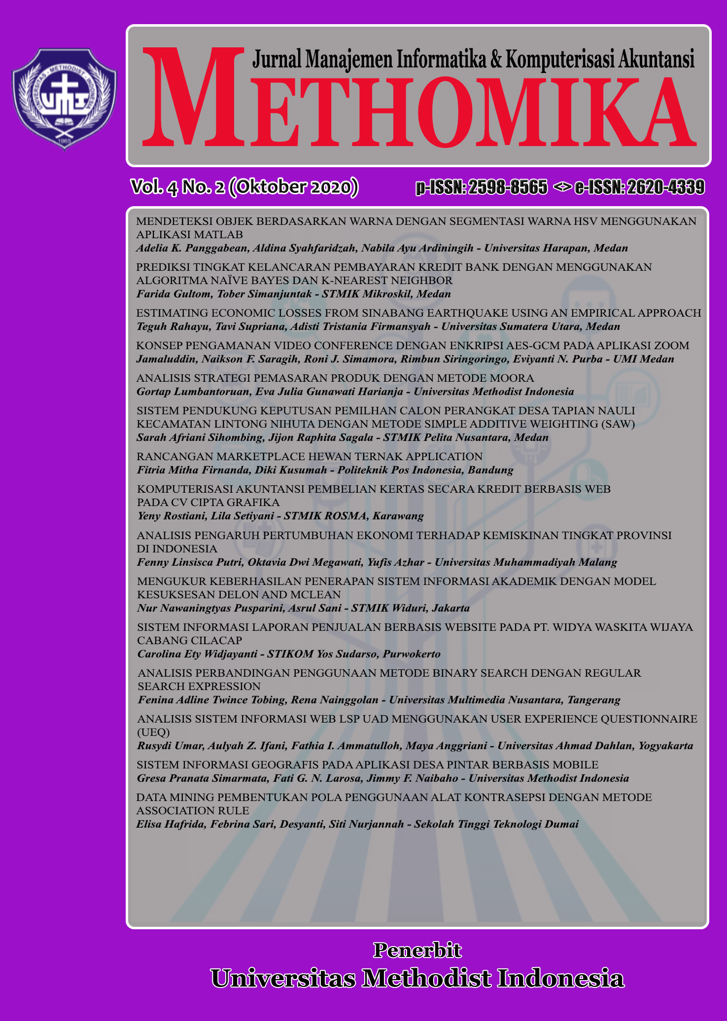 METHOMIKA: Jurnal Manajemen Informatika & Komputersisasi Akuntansi Vol. 4 No. 2 Tahun 2020