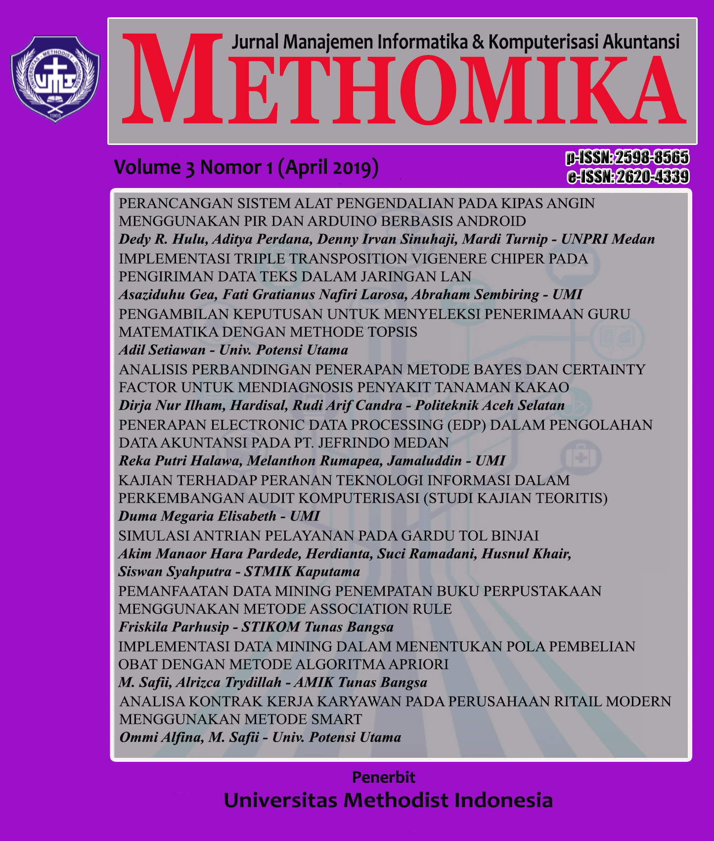 METHOMIKA: Jurnal Manajemen Informatika & Komputersisasi Akuntansi Vol. 3 No. 1 Tahun 2019