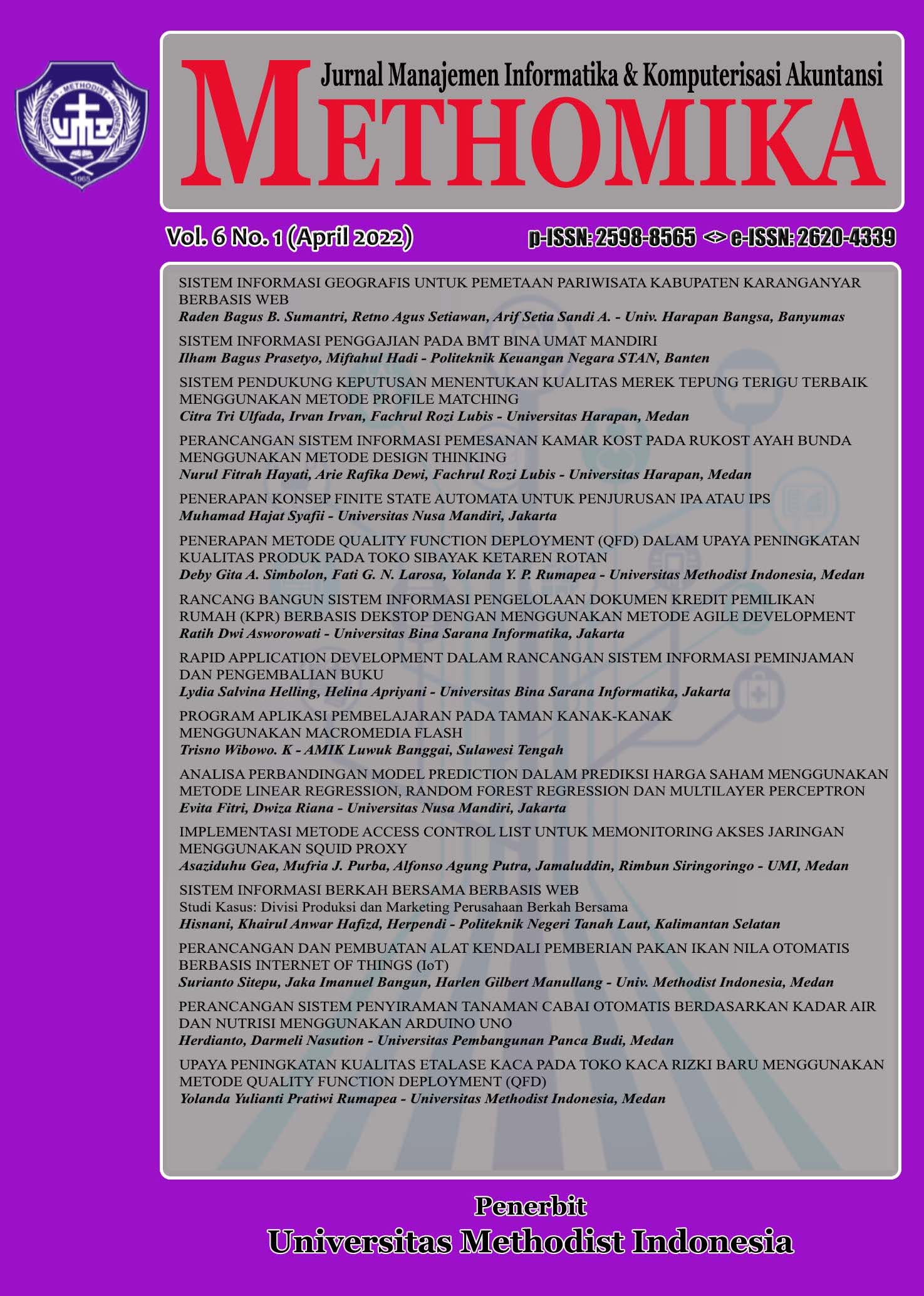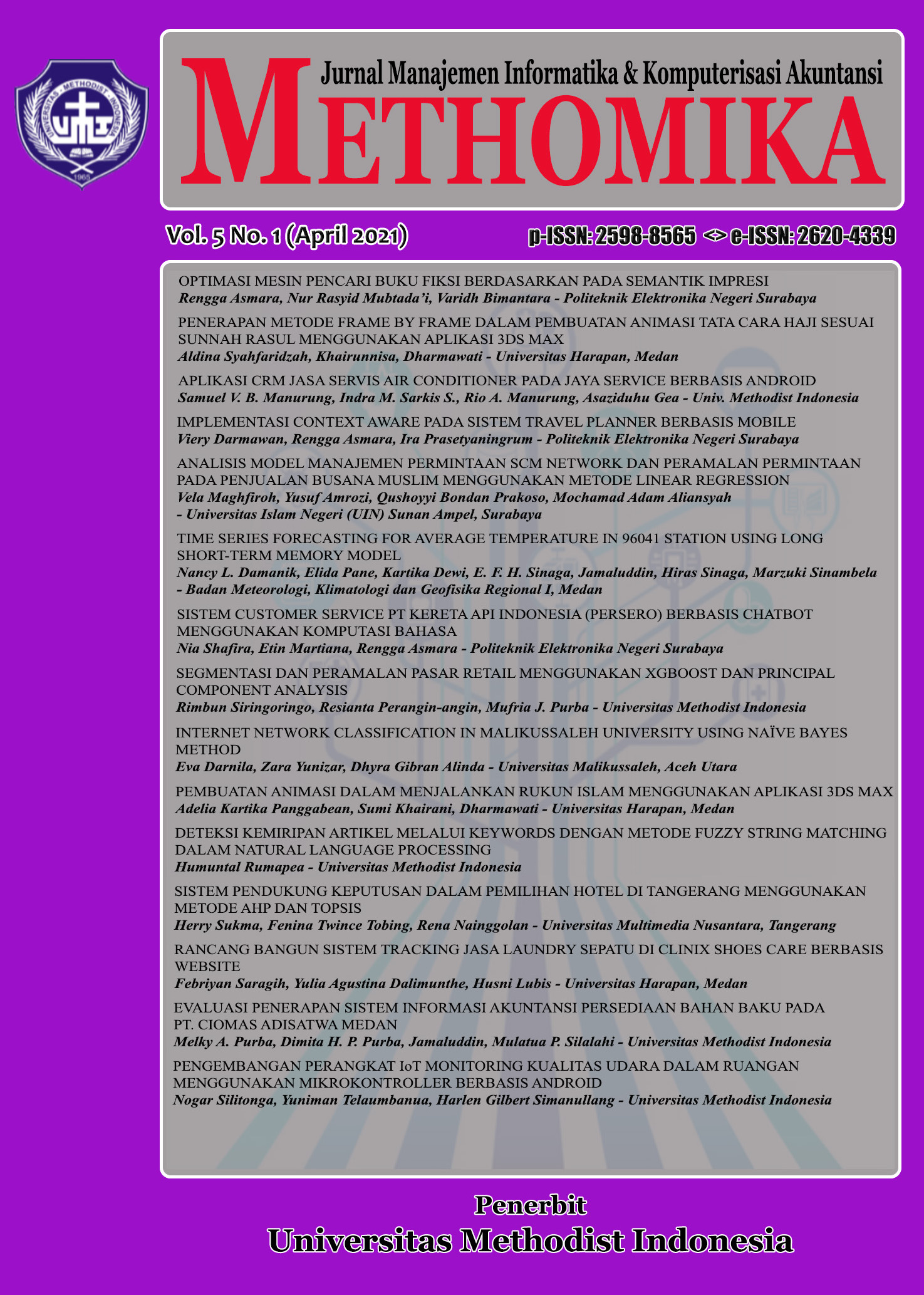 METHOMIKA: Jurnal Manajemen Informatika & Komputersisasi Akuntansi Vol. 5 No. 1 Tahun 2021